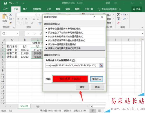 7、點擊確定后,這個時候會返回到“新建格式規(guī)則”對話框中,再次點擊“確定”按鈕。如圖所示;