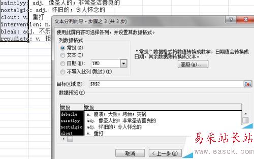 6、用與上述步驟同樣的操作,以英文句點作分隔符,將詞性一列分割到單獨的列中。全部分割結(jié)束后,使用自動格式對表格進行美化,便于此后閱讀使。
