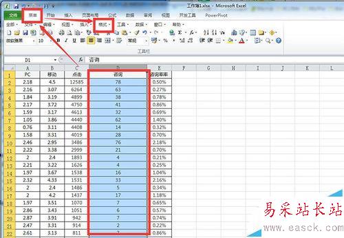 1、依然選中需要添加格式條的單元格,然后點擊菜單欄的“菜單”,在下方出現的工具欄中找到格式選項。