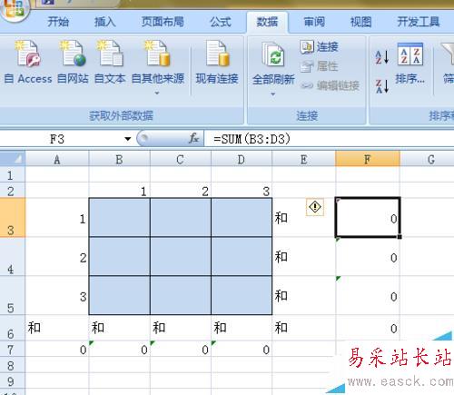 2、我們需要像圖中一樣建立個(gè)3×3的表格,并設(shè)置對行,列,對角線進(jìn)行求解。這是規(guī)劃求解中的一項(xiàng)約束條件。