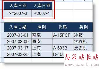 【例】如下圖所示為入庫明細表。要求按條件完成篩選。