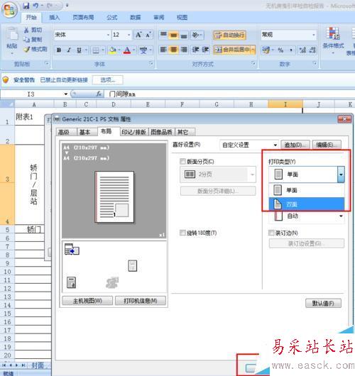 4、在布局中,打印類型,將單面改為雙面,然后點擊確定。
