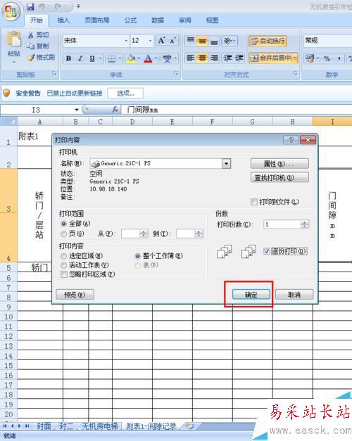 5、然后在打印內(nèi)容頁面點擊確定,然后打印機就打出雙面的整個工作薄的文件。