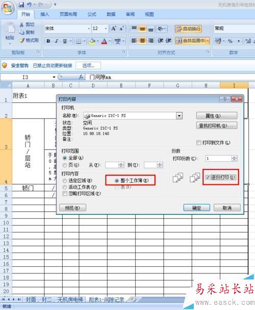 2、然后出現(xiàn)打印內(nèi)容的頁面,選擇整個工作薄,逐份打印。