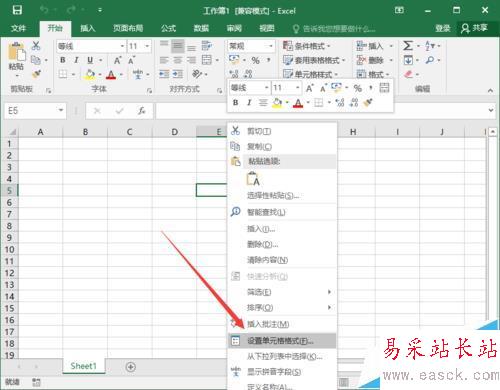 2、在Excel工作表中,選中需要設置的單元格,點擊鼠標右鍵,在彈出的菜單選項框中點擊“設置單元格格式”選項。如圖所示;