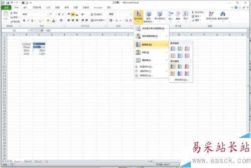 5、點選一種你想要的數(shù)據(jù)條填充方式,單元格的數(shù)據(jù)就用數(shù)據(jù)條顯示出來了。如圖。