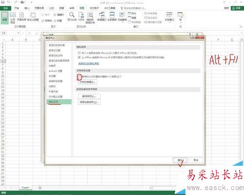 3、在彈出的對(duì)話框中選擇信任中心,并選擇信任中心設(shè)置,接著選擇隱私選項(xiàng),并把保存時(shí)刪除個(gè)人信息的對(duì)號(hào)去掉,整體設(shè)置完成,按快捷鍵ALT+F11,打開VBA編輯界面,并插入一個(gè)模塊,如下圖所示: