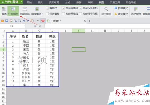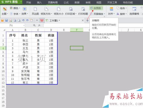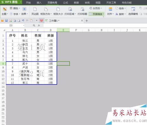 一張表格里面含有兩個(gè)班級(jí)的信息,現(xiàn)在需要將這張表格分頁打印,一個(gè)班級(jí)是一頁,應(yīng)該如何設(shè)置呢?