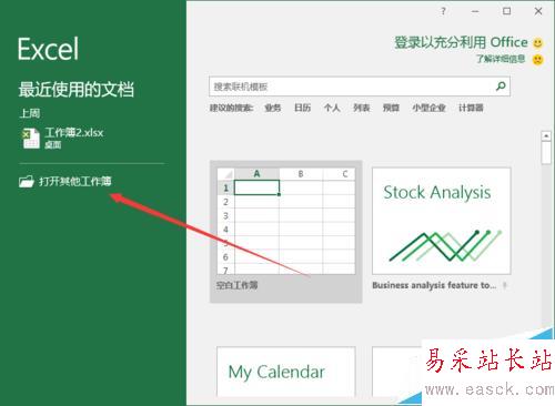 1、鼠標左鍵雙擊計算機桌面Excel2016程序圖標,將其打開運行。點擊打開其他工作簿選項,打開需要編輯的工作簿文件。如圖所示;