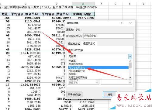 6、最后 我們可以設(shè)置值顯示方式。如這里我們先擇列匯總比例。這個(gè)大家可以去多試試,里邊有很多種不同的計(jì)算方式得到不同的參考值。我就不一一說話了。