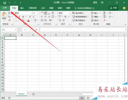 2、在打開的Excel工作表中,鼠標左鍵點擊窗口左上角的“文件”命令選項按鈕。如圖所示;