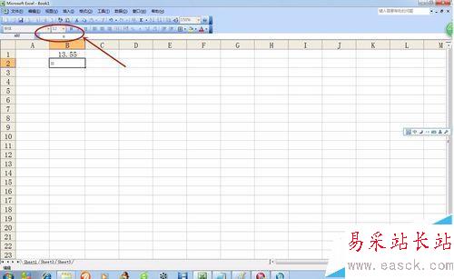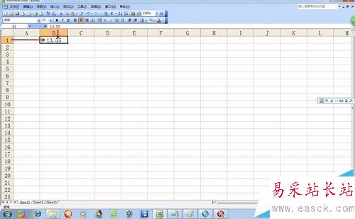 1、打開Microsoft Excel表,在B1單元格中輸入股票價格,比如13.55元,用手工計算可知第一個漲停板的價格為14.91元