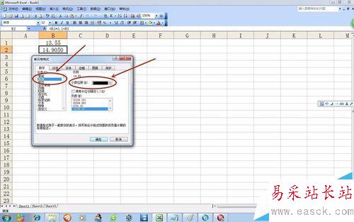 5、在數字標簽下選擇數值選項,選擇保留2位小數位數,單元格顯示數字為14.91