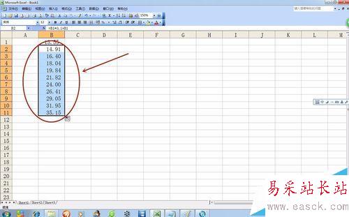 6、把鼠標放在B2單元格的右下角,當鼠標變成十字星時,向下拉出十個的單格,這就是該股票十個漲停板的價位