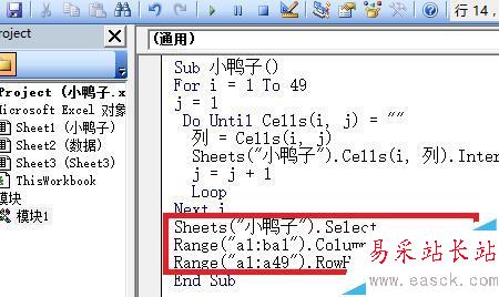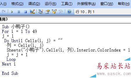 6、編程,通過讀取“數據”表格里的數據,給“小鴨子”表格里相應的單元格涂色,這里我們圖的是黑色。