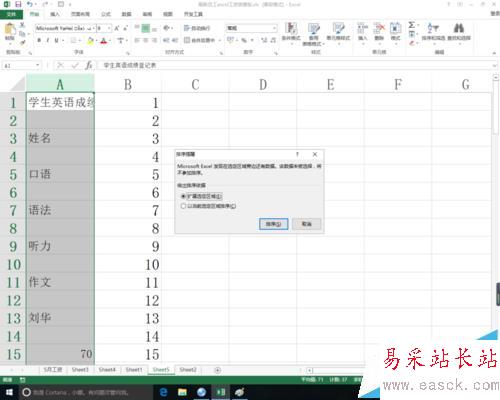 6、重新對a列排序,excel彈出排序提示框是否擴展當前選區,我們選擇是。查看結果,B列同樣進行了排序操作。