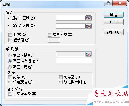 注意事項:不要忘記選擇輸出區域和正態概率圖。