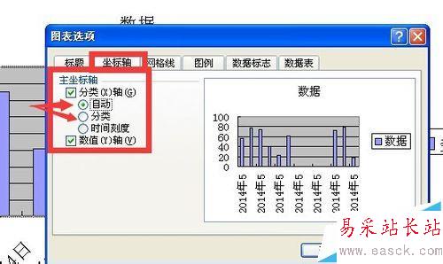 8、點擊坐標(biāo)軸選項卡 將自動改為分類 如下圖所示