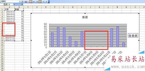 如何去除excel柱形圖軸上的空白日期