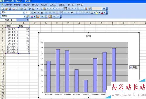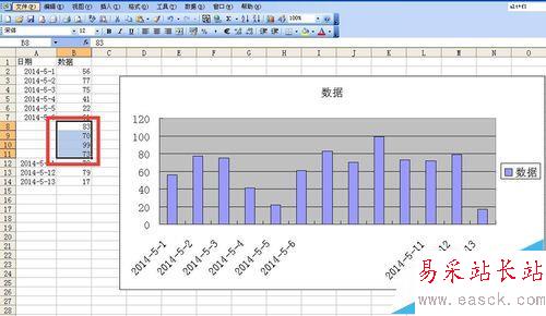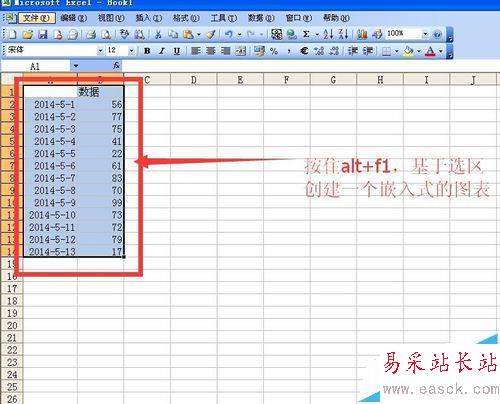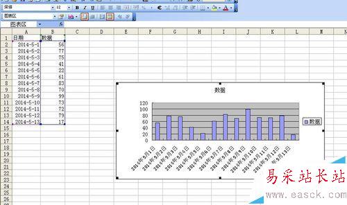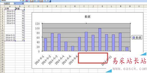 1、如圖所示新建一個excel文件,第一列為日期 第二列為數(shù)據(jù)