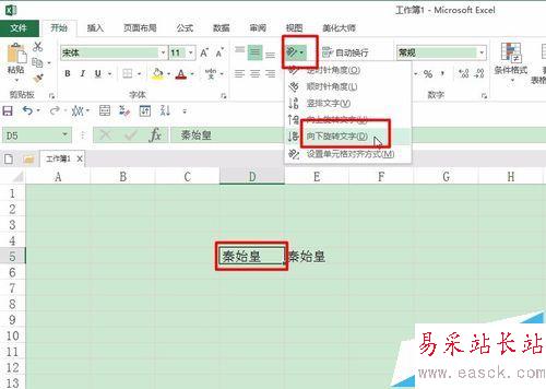 2、選擇第1個名字的文字方向為“向下旋轉”
