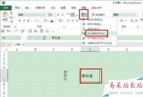 3、選擇第2個名字的文字方向為“向上旋轉”