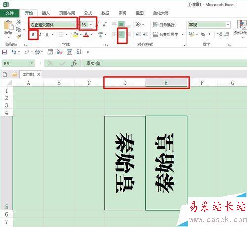 4、調整字體、字號、加粗與否、文字居中,拉大單元格到合適大小。