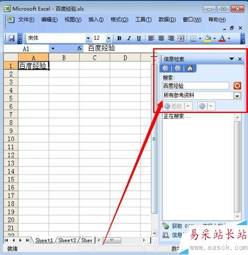 1、我們經常會在編輯的excel電子表格的時候,經常會碰到信息檢索,這個很麻煩,關都關不掉,很讓我們頭疼 ,以下我會給大家提供一個解決方法
