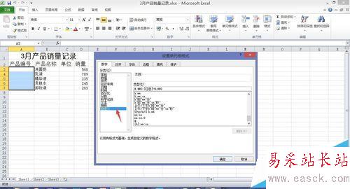 2、在彈出來的對話框里選則“數字”“自定義”,數字——自定義