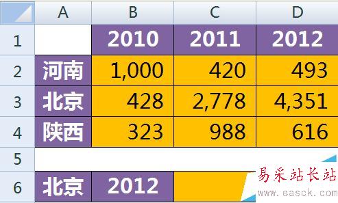 1、如圖,A1:D4是一個二維表。需要根據A6和B6單元格指定的內容返回數據。