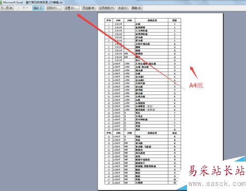 3、確定→選擇預(yù)覽(如下圖)→這時(shí)候打印的頁面已經(jīng)變成很長的縮小版本了(如下圖)然后選擇設(shè)置(如下圖)