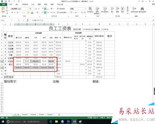 6、自動(dòng)求和完成,但是本例中定位單元格的時(shí)候出現(xiàn)了一點(diǎn)問題,在12行中有空白單元格被錯(cuò)誤定位,所以我們應(yīng)該在定位前,編輯好源數(shù)據(jù)的格式。這樣才能得到正確的結(jié)果。在源空白單元格中輸入0值即可。