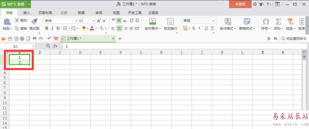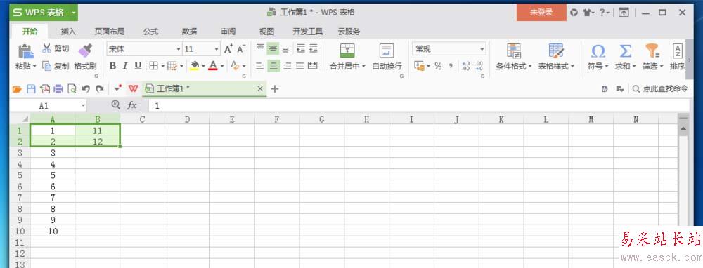 1、輸入第一列。打開表格,在矩陣的第一列(A1和A2)輸入1和2,確定A列,然后豎向填充10個單元格,如圖: