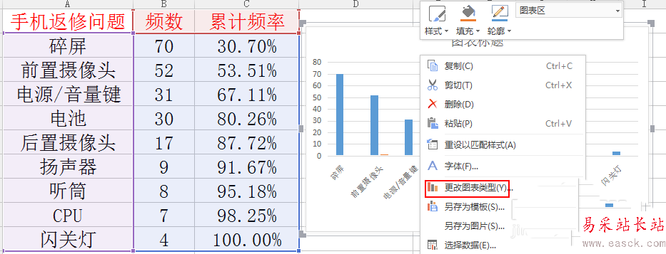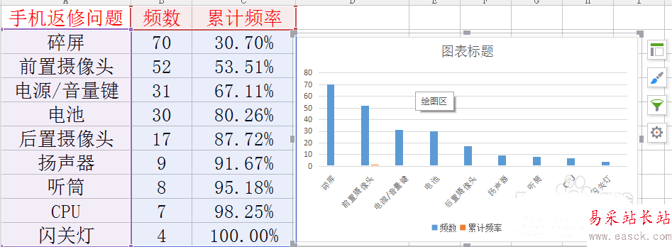 excel表格中怎么制作帕累托圖表?帕累托圖(Pareto chart)是將出現的質量問題和質量改進項目按照重要程度依次排列而采用的一種圖表,下面我們就來看看詳細的教程。