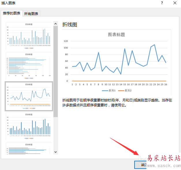 3、這里我們以折線圖為例,我們選擇折線圖然后點擊確定即可
