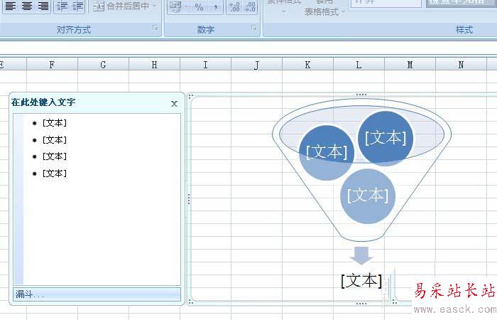 3、鼠標(biāo)左鍵選擇一個(gè)關(guān)系圖的樣式,excel表格中就出現(xiàn)了該關(guān)系圖,這里選擇了(漏斗圖),如下圖所示。