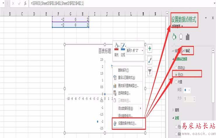 6、在圖表單擊右鍵選擇數據系列,在“設置數據系列格式”窗格中單擊“填充線條”按鈕,選擇“標記”選項后點擊“數據標記選項”欄,選擇“無”單選按鈕。