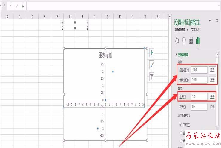 4、在圖表中雙擊橫軸打開“設置坐標軸格式”窗格,在“坐標軸選項”欄中根據需要設置“最大值”、“最小值”和主要刻度單位,如圖4所示。
