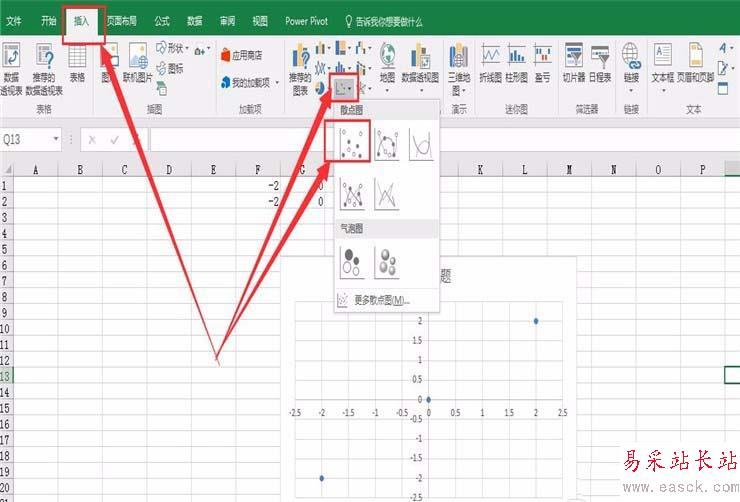 2、選擇數據區域中任一單元格,依次點擊“插入”、“圖表”“散點圖”,選擇“僅帶數據標記的散點圖”選項,創建散點圖。