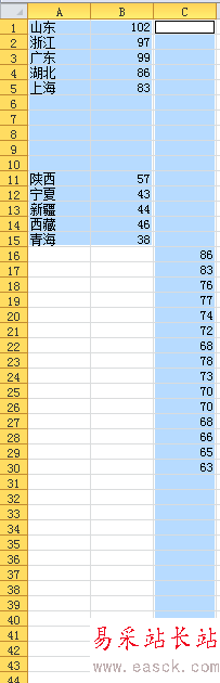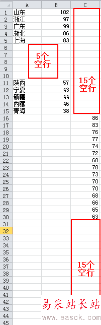 1、如果你的原始數據如下面第一張圖所示,由于只重點關心前5個和后5個的數據,需要將數據其按照第二張圖進行重新排列。這樣1:1:1的排列方式的目的是保證被壓縮顯示的數據恰好能放在整張圖表的中間而沒有重疊。