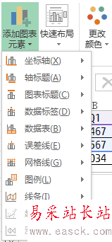 (4)各類圖表元素的添加和調整都可以在“圖表工具”菜單“設計”選項卡中的“添加圖表元素”按鈕進行操作;