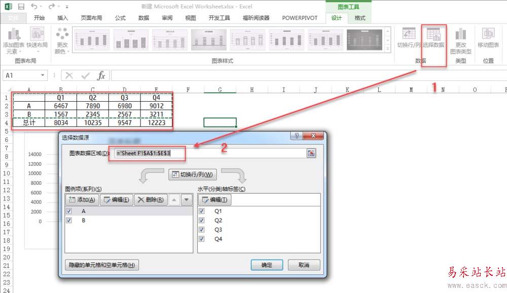 (3)通過“選擇數據”按鈕可以實現對數據的增減和調整;