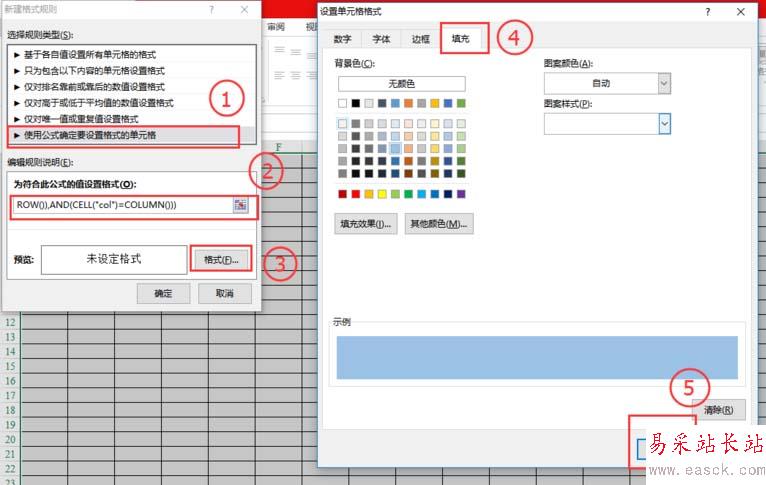 然后點擊格式,選擇行列要填充的顏色,我們選擇一個藍色的,然后確定。