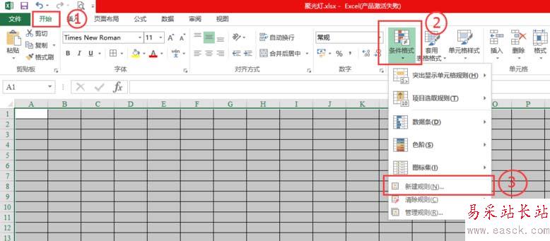 3、在開始菜單功能區下,點擊條件格式,選擇新建規則。