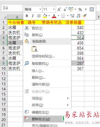 右鍵單擊選區并選擇“刪除批注”,這樣所有的批注內容和批注標識就都會被刪除掉了。比一個一個地手動右鍵刪除要省事多了吧。