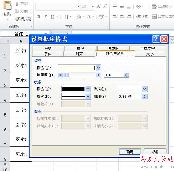 4、在彈出的設置批注格式對話框中切換到顏色與線條選項卡。
