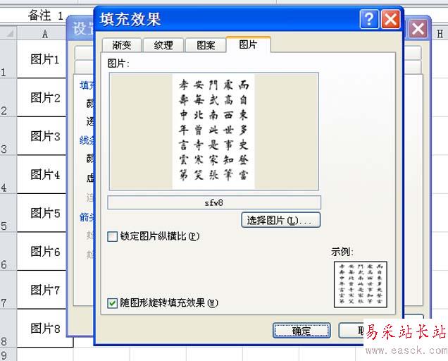 6、在彈出的填充效果對話框中切換到圖片選項卡,點擊選擇圖片按鈕,選擇一副圖片,點擊插入。
