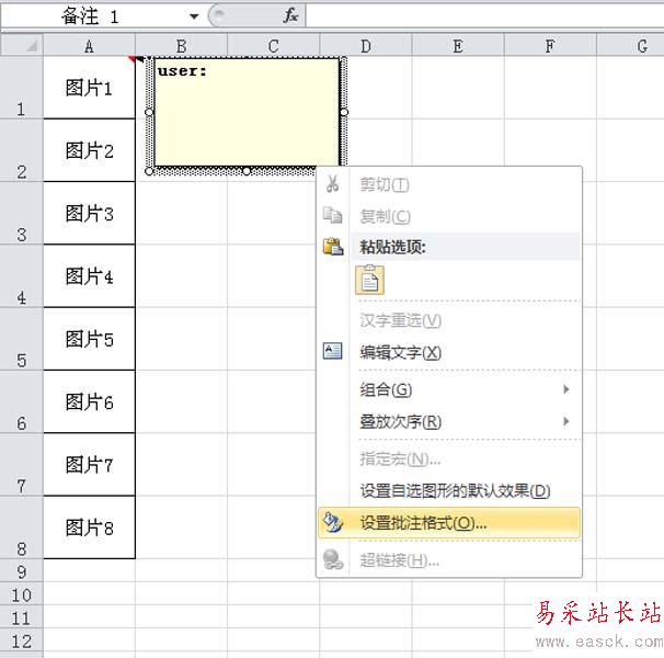 3、右鍵單擊批注,從下拉菜單中選擇設置批注格式選項。
