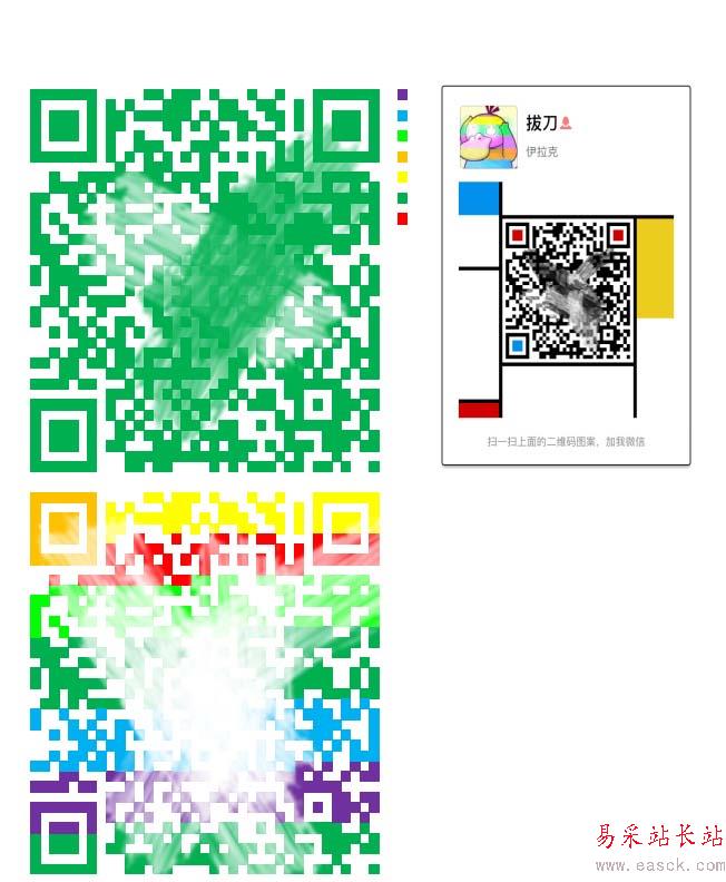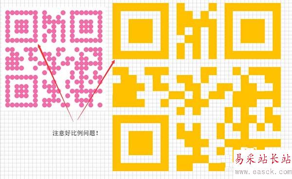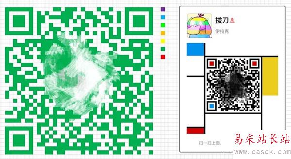 3、根據(jù)二維碼的規(guī)律,用油漆桶給格子填充顏色(快捷鍵F4),需要耐心完成。