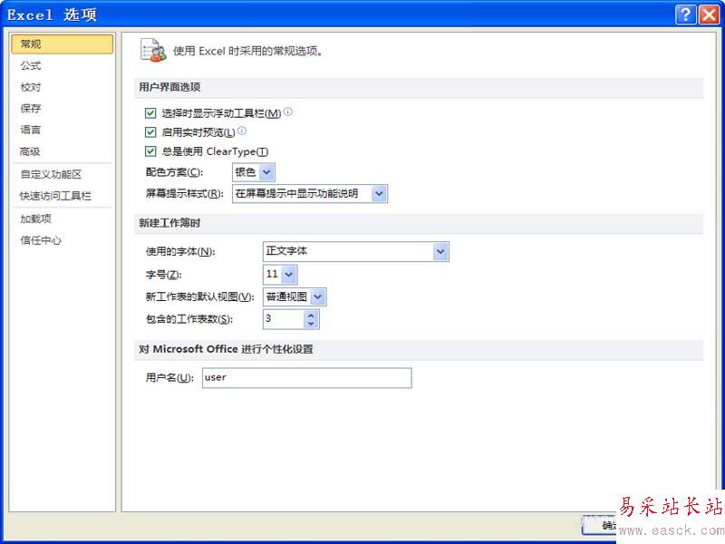 2、執行文件-選項命令,接著彈出excel選項對話框。
